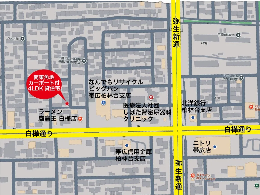 白樺通り沿いにもすぐに出れるので芽室方面や帯広の市街地などにもスムーズに移動できます。